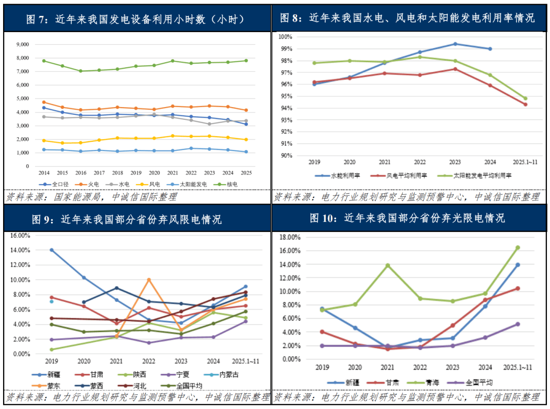 2025年以来,受电力装机供给增速较快而用电需求增速放缓影响,全国发电设备平均利用小时数继续走低;2026年在国内经济增速放缓、能源供给结构变化及新型电力系统建设等因素影响下,全国发电设备利用情况面临较多不确定性,不同电源类型机组利用效率仍将延续分化态势