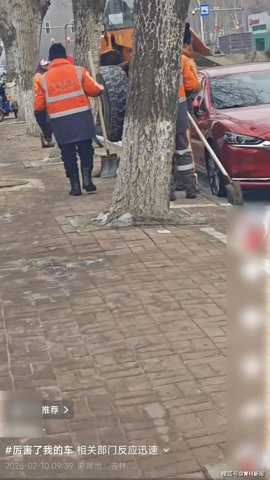 此前网友发布的多段视频显示,这些车辆车身覆盖着厚厚的灰褐色冰层,车底还挂着密密麻麻的冰凌,就像被裹上一层厚厚的“冰衣”,也有人称像被包浆了一样,有人拿来菜刀锤子等工具,试图去除这些冰层。10日上午,有车主更新的视频显示,车身的冰已被去除,并被擦洗干净,现场还有工人及铲车进行地面除冰作业。